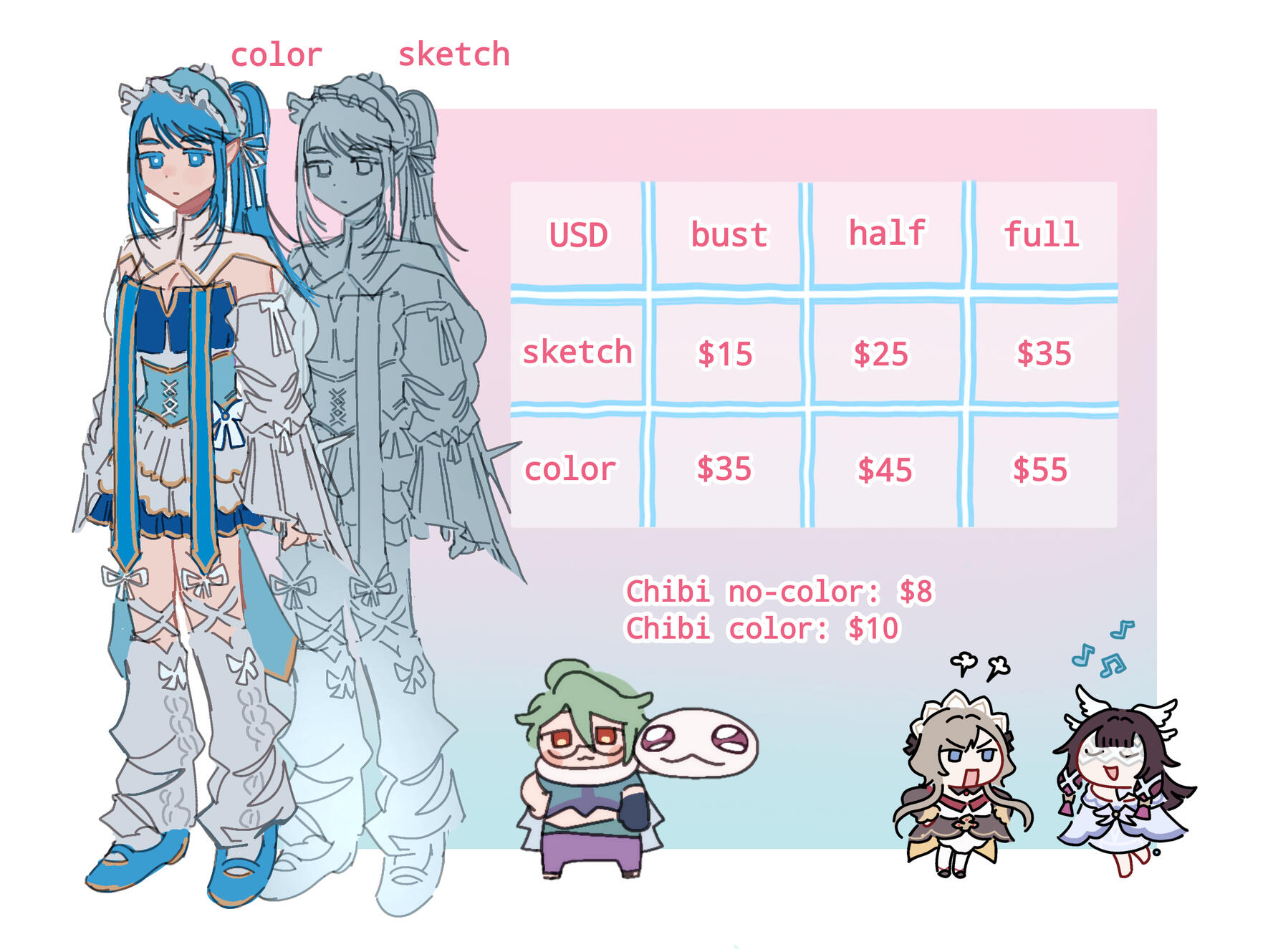 • Full Body: $55Chibi• Non-coloured: $8
